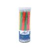 ดินสอดำ HB แบบเหลาพร้อมใช้งาน, ตัวด้ามมีหลายสี สีสันสดใส คละสีนีออนในกระบอก (ชมพู, ส้ม, เขียว และเหลือง), ด้ามไม้เนื้ออ่อนเหลาง่าย ไส้ไม่เปราะง่าย เขียนได้นุ่มและลื่น, มียางลบที่ปลายด้าม, บรรจุ 50 แท่ง/กระปุก