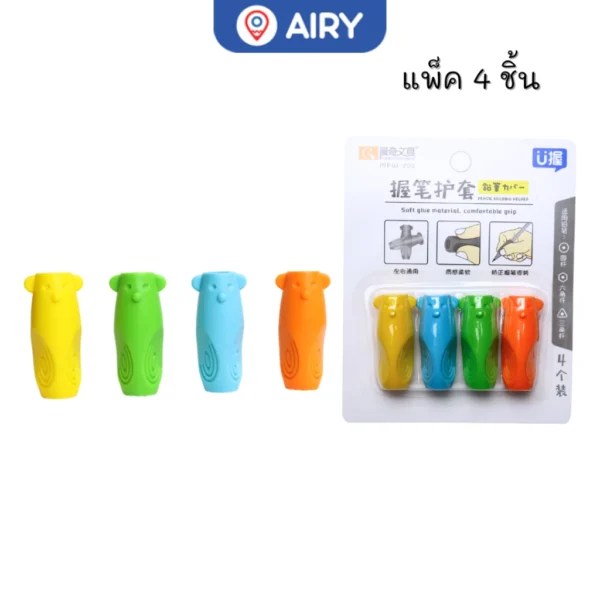 ปลอกยางใส่ดินสอแบบนิ่ม ทำให้จับเขียนดินสอได้ ไม่เจ็บนิ้ว ช่วยทำให้เขียนได้นานขึ้น, ใส่ได้ทั้งดินสอรูปทรงสามเหลี่ยม รูปทรงวงกลม รูปทรงหกเหลี่ยม, เหมาะสำหรับเด็กเพื่อฝึกการจับดินสอ ช่วยบรรเทาอาการปวดนิ้วเมื่อเขียนนานๆได้, มีจำนวน 4 ชิ้น/แพ็ค