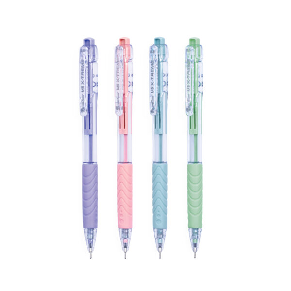 ปากกาลูกลื่นหมึกสีน้ำเงิน ขนาดเส้น 0.5 มม., ผลิตจาก Nickel Silver แข็งแรง ทนทาน, เขียนลื่น ลายเส้นคมชัด, ตัวด้ามปากกาใส มีสีพาสเทลที่หัวกดและด้ามจับ, เป็นคละสีด้าม บรรจุ 50 ด้าม/กระปุก