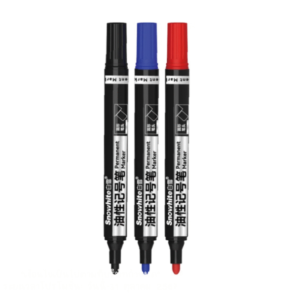 ปากกามาร์คเกอร์หมึกน้ำมัน แห้งเร็ว, สามารถเขียนได้หลากหลายพื้นผิว เช่น กล่องกระดาษ, กระจก, เซรามิค, ไม้, เครื่องหนัง และ พลาสติก