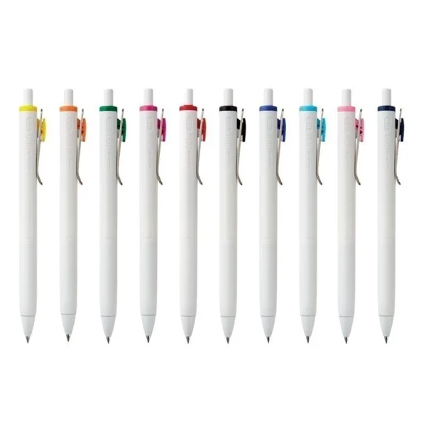 ปากกาเจลสีตามด้าม ขนาดเส้น 0.5มม. สีสันสดใส, ออกแบบและผลิตจากประเทศญี่ปุ่น, น้ำหมึกแห้งไว กันน้ำ สีเข้ม ทำให้ง่ายต่อการจดจำ, มียางจับถนัดมือ ทำให้ไม่เจ็บมือขณะเขียน