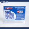 ผลิตจากพลาสติกเนื้อดี มีความแข็งแรง ทนทาน, เนื้อพลาสติกโปร่งใส, ฐานวางมั่นคงและแข็งแรง, แท่นสำหรับตั้งโต๊ะ เป็นรูปทรง L-SHAPE, สามารถถอดฐานแยกออกมาจากตัวอะคริลิคได้