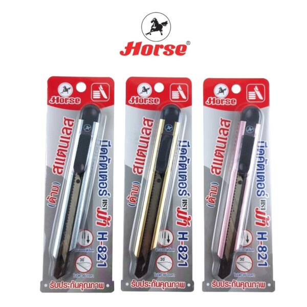 / มีดคัตเตอร์ No.H-821 ยี่ห้อ ม้า (คละสี)(1 อัน)