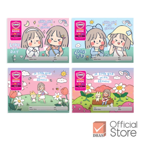 กระดาษวาดเขียนแบบเรียบ ขนาด 190×260 มม., ความหนากระดาษ 80 แกรม, เข้าเล่มแบบมุงหลังคา, เหมาะสำหรับใช้วาดภาพ ระบายสีด้วยดินสอ, ปากกาเมจิก, ดินสอสี, สีชอล์ก และ สีเทียน, บรรจุ 10 แผ่น/เล่ม (รวมปก)