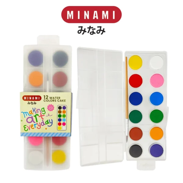 สีน้ำแบบชนิดก้อน 12 สี แถมฟรี! พู่กัน 1 อันในกล่อง, ผลิตจากผงสีชนิดดี สีเนียน สีสด ระบายได้ สวยงาม, ใช้งานง่าย บรรจุในกล่องพลาสติก แข็งแรงทนทาน
