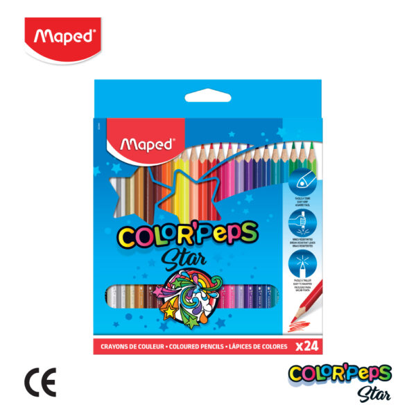 สีไม้คุณภาพ ผลิตจากเนื้อไม้แท้ เหลาได้ง่าย เนื้อไม้ไม่เป็นขุย ไส้สีแข็งแรง ไม่หักง่าย, ด้ามจับสามเหลี่ยม จับได้ถนัดมือ, สีสันสดใส เนื้อสีนุ่มลื่น ระบายง่าย