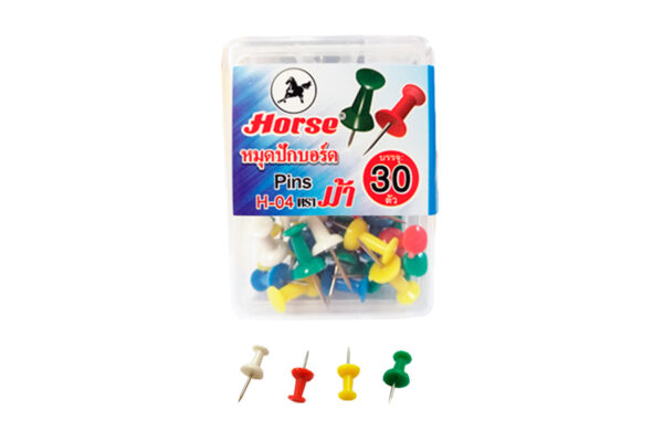 หมุดปักอเนกประสงค์ ชนิดเป๊กกดกระดาษ (Map-Pin), ผลิตจากเหล็กคุณภาพดี ใช้สำหรับติดบอร์ดประกาศ หรือกำหนดจุดตามต้องการ, บรรจุ 30 อัน/กล่อง