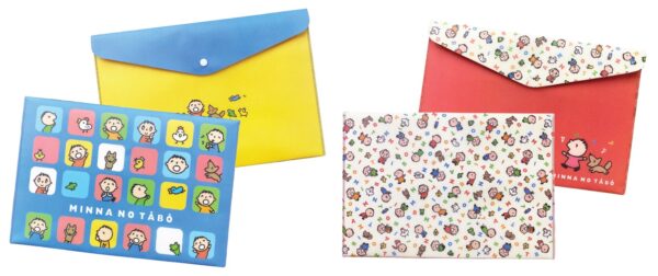 แฟ้มกระดุมขนาด F4 ลาย MINNA NO TABO (ลิขสิทธิ์แท้) เป็นแฟ้มซองพลาสติกคุณภาพดี มีกระดุม 1 เม็ด สำหรับเปิด-ปิด ป้องกันเอกสารตกหล่นได้, สามารถใช้จัดเก็บเอกสารขนาด A4 และ F4 ได้