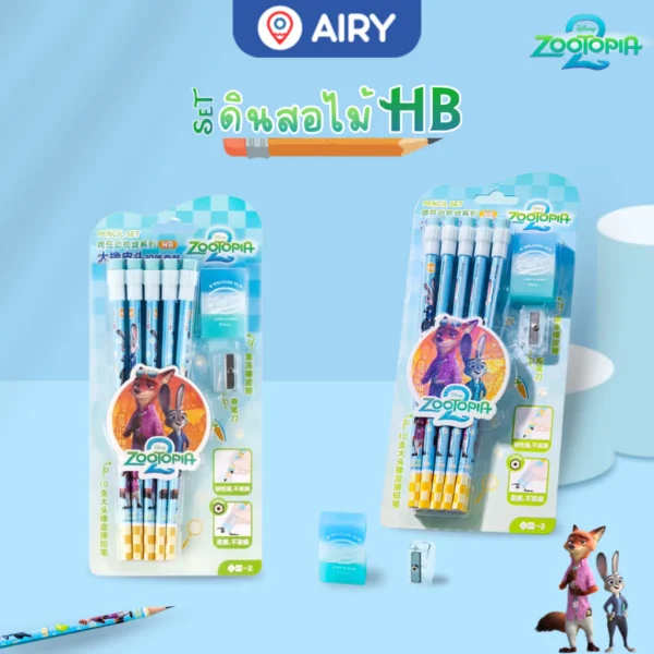 ชุดเครื่องเขียนดินสอ HB ลิขสิทธิ์แท้จาก Zootopia, 1 ชุด ประกอบไปด้วย ดินสอไม้ทรงหกเหลี่ยม ความเข้ม HB 10 แท่ง, กบเหลาดินสอ 1 อัน และยางลบ 1 ก้อน