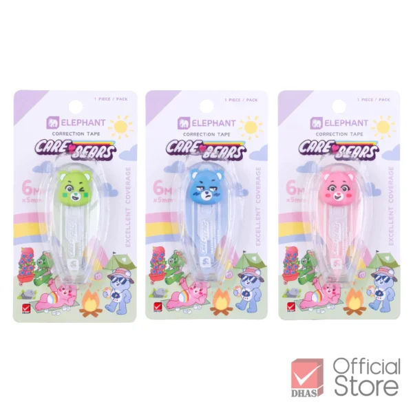 เทปลบคำผิดลายน่ารัก ลิขสิทธิ์แท้จาก Care Bears, เนื้อเทปกว้าง ขนาด 5 มม.x6 เมตร, เนื้อเทปออกสม่ำเสมอ แห้งเร็ว สามารถเขียนทับได้เลย, มีกลไกป้องกันเทปหย่อนหรือบิดตัว, ขนาดกระทัดรัด พกพาสะดวก