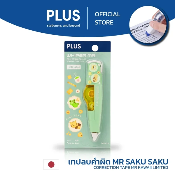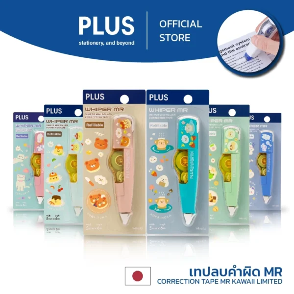เทปลบคำผิด รุ่น Limited Kawaii Collection ลายคาแรคเตอร์น่ารักจากญี่ปุ่น, เนื้อเทปความกว้าง ขนาด 5 มม.x6 เมตร, หัวหมุนเป็นเกลียวแบบใหม่ ช่วยให้เนื้อเทปเรียบสนิท ลบลื่น, รูปทรงเหมือนปากกา ออกแบบมาเพื่อให้ใช้งานได้ง่าย จับถนัดมือ, สามารถเปลี่ยนไส้เทปได้ (ใช้กับรีฟิลเทปเบอร์ WH-605R)