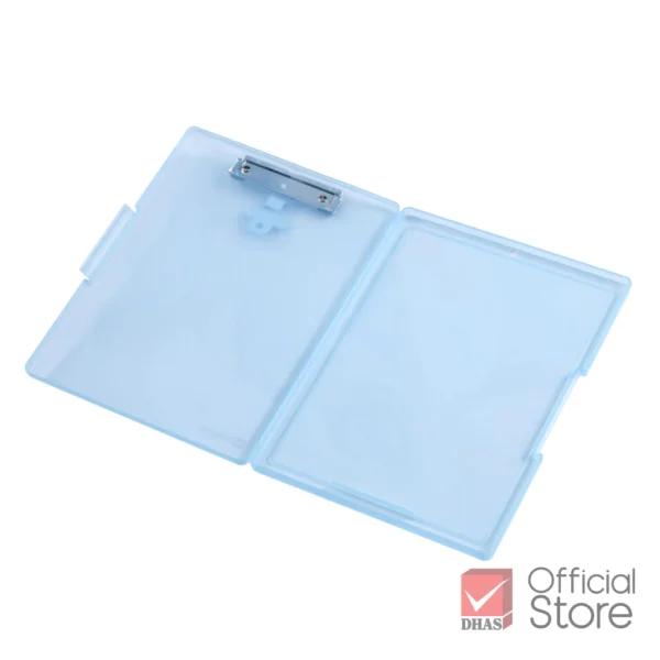 ผลิตจากพลาสติก PP ผิวด้าน คุณภาพดี, มีคลิปหนีบโลหะ มีพลาสติกหุ้มขอบ, มีพลาสติกเสริมตัวคลิป สามารถใส่ปากกาและแขวนได้, เปิดข้างมีตัวล็อคตรงกลาง สามารถใช้เป็นกระดานรองเขียนและเก็บเอกสารได้, ความหนา 2 ซม. ใส่เอกสารได้มากถึง 150 แผ่น, เหมาะสำหรับใส่เอกสารขนาด A4