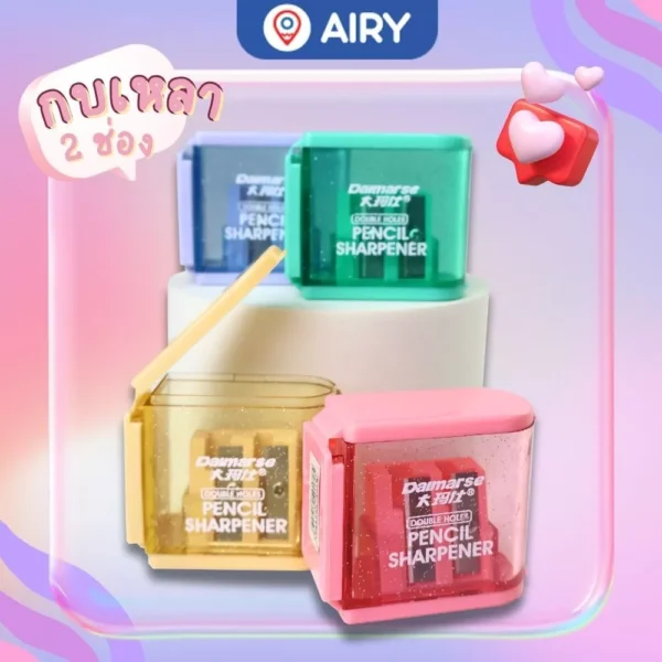 กบเหลาดินสอ 2 ช่อง สีสันสดใส พร้อมกลิตเตอร์สุดน่ารัก, น้ำหนักเบา สามารถพกใส่กระเป๋าได้, ใช้ได้กับดินสอไม้ สีไม้ทั่วไป เหลาแล้วไส้ไม่หัก ไม่กินเนื้อไม้, ตัวกบเหลาเป็นแบบใส สามารถมองเห็นด้านในได้ชัดเจน