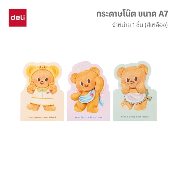 กระดาษโน๊ตไม่มีกาวในตัว ขนาด A7 ลายลิขสิทธิ์แท้จากน้องหมีเนย (Butter Bear), กระดาษโน๊ตฉีกได้ ลายน้องหมีเนย น่ารัก ใช้งานง่ายสะดวก, กระดาษหนา คุณภาพดี, เหมาะสำหรับจดบันทึกต่างๆ, บรรจุ 80 แผ่น/แพ็ค