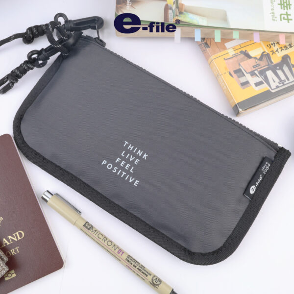 ผลิตจากผ้าไนล่อน เคลือบ PVC ด้านใน ทำให้น้ำหรือความชื้นไม่ซึมเข้าด้านในได้ง่าย, ภายในมีช่องใส่ของแบ่งเป็น 2 ช่อง เพื่อหยิบใช้งานได้สะดวก, มีซิปรูดเปิด-ปิดง่าย, น้ำหนักเบา พกพาสะดวก, สามารถใส่โทรศัพท์มือถือ gadget , อุปกรณ์เครื่องเขียน , หรือเอกสารสำคัญที่ต้องการพกพาเพื่อเดินทาง