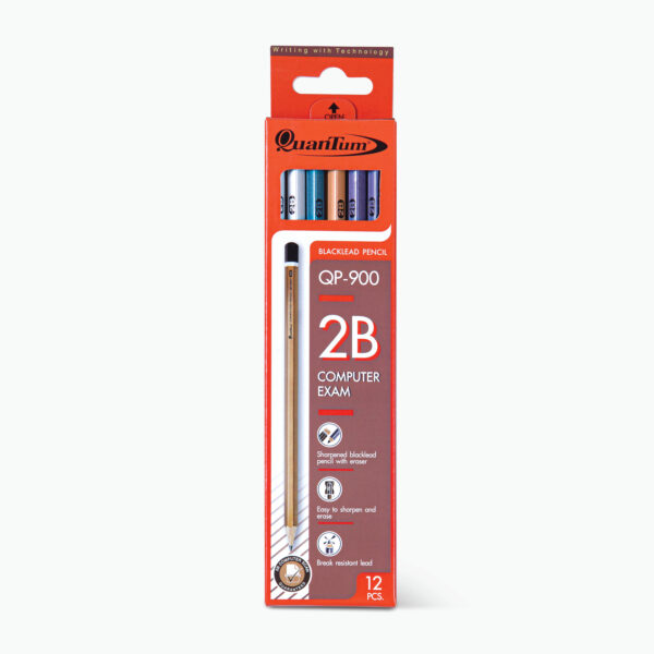 ดินสอดำ 2B, ผลิตจากไม้คุณภาพดี เหลาง่าย ไส้ไม่หักง่าย, เนื้อดินสอสีดำ เขียนได้คมชัด, เหมาะสำหรับงานเขียนทั่วไป และใช้ทำข้อสอบที่ตรวจด้วยคอมพิวเตอร์ได้, บรรจุ 12 แท่ง/กล่อง