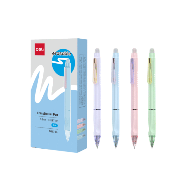 ปากกาเจลลบได้ หมึกสีน้ำเงิน หัวปากกา 0.5มม., ที่ปลายด้ามปากกาเป็นยางลบ ลบสะอาด พร้อมใช้งาน, ตัวด้ามเป็นสีพาสเทล น่ารัก พกพาสะดวก