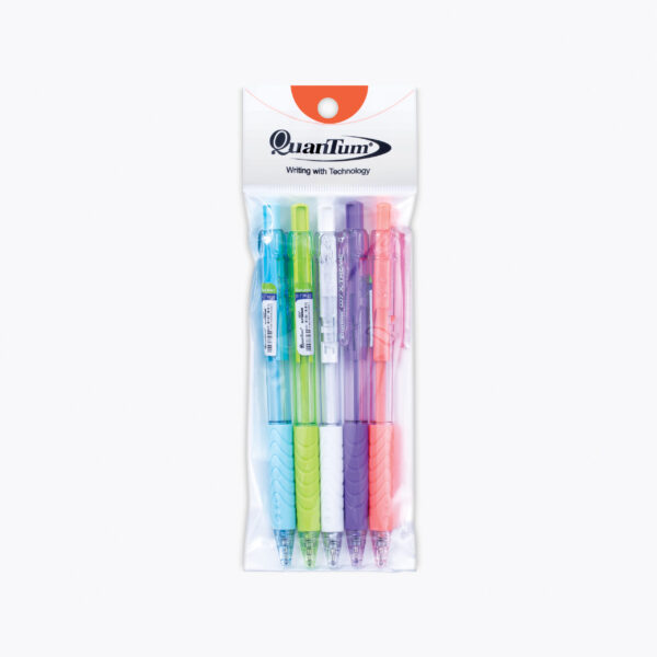 ปากกาลูกลื่นหมึกสีน้ำเงิน ขนาดเส้น 0.7 มม., ผลิตจาก Nickel Silver แข็งแรง ทนทาน, เขียนลื่น ลายเส้นคมชัด, ตัวด้ามปากกาใสมีสีที่หัวกดและด้ามจับ, เป็นคละสีด้าม บรรจุ 5 ด้าม/แพ็ค