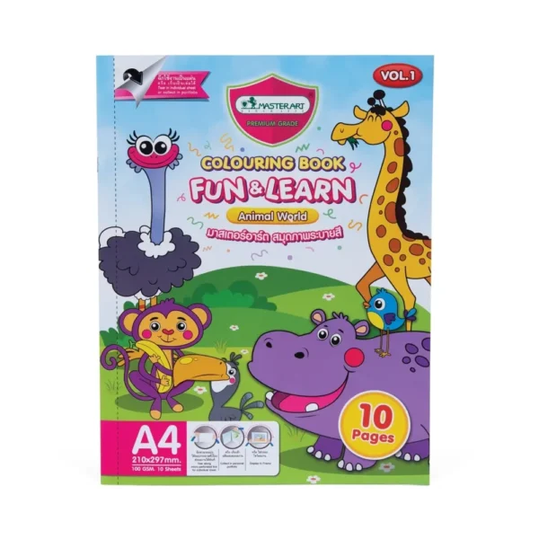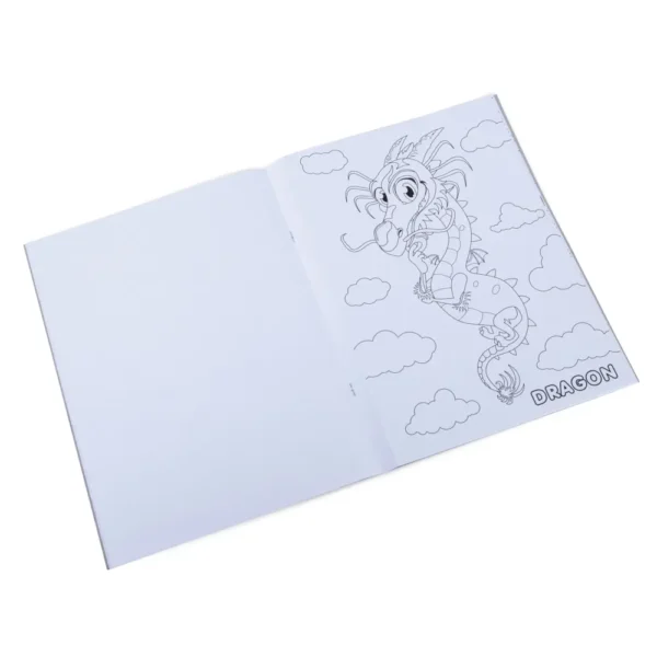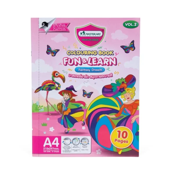 สมุดภาพระบายสี ขนาด A4 ช่วยเสริมสร้างจินตนาการและพัฒนาทักษะด้านศิลปะของเด็กๆ, มีภาพวาดลายเส้นคมชัด ออกแบบให้ระบายสีได้ง่าย, ความหนากระดาษ 100 แกรม, รองรับสีได้หลากหลายประเภท เช่น สีไม้ สีเมจิก และสีเทียน, มีภาพวาดให้ระบายสีหลากหลายแบบ บรรจุ 10 หน้า/เล่ม