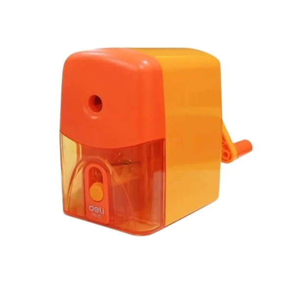 เครื่องเหลาดินสอแบบ 1 รู, ตัวเครื่องผลิตจากพลาสติกคุณภาพดีและเหล็กชุบโครเมียม แข็งแรง สีสดใส, ใบมีดแบบเกลียวหมุน คมนาน, มีช่องเก็บเศษดินสอขนาดใหญ่ ถอดจากด้านหน้าได้, ที่จับหมุนได้ง้าย จับกระชับมือ, มีขาล็อกยึดตัวเครื่องติดกับโต๊ะ ป้องกันการลื่นไหล