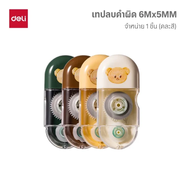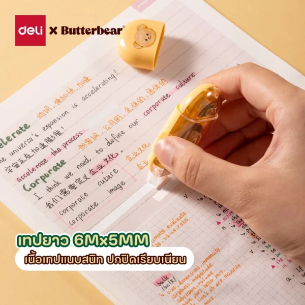 เทปลบคำผิด ลายลิขสิทธิ์แท้จากน้องหมีเนย (Butter Bear), เนื้อเทปกว้างพิเศษ ขนาด 5 มม.x6 เมตร, เนื้อเทปออกสม่ำเสมอ แห้งเร็ว สามารถเขียนทับได้เลย, มีกลไกป้องกันเทปหย่อนหรือบิดตัว, ขนาดกระทัดรัด พกพาสะดวก