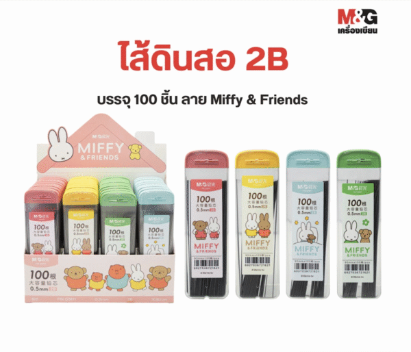 ไส้ดินสอ 2B ขนาด0.5มม. ลายลิขสิทธิ์แท้จาก Miffy & Friends No.FSLQ3811, ไส้แข็งแรง เขียนลื่น, บรรจุ 100 ไส้/หลอด