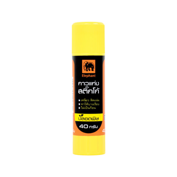 กาวแท่ง ปริมาณสุทธิ 40 กรัม, เนื้อกาวสีขาว ไม่เยิ้ม ไม่เป็นก้อน, ใช้งานง่าย เหนียว ติดแน่น สะอาด, ปลอดภัย กลิ่นไม่ฉุนรุนแรง, สำหรับใช้ติดกระดาษ รูปภาพ และงานฝีมืออื่นๆ