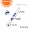 มีดคัตเตอร์ขนาดเส้นผ่าศูนย์กลาง 20 มม., มีปุ่มสำหรับเลื่อนเก็บครอบใบมีด, สามารถปรับเปลี่ยนใบมีดได้ง่าย, ตัวด้ามจับถนัดมือ แข็งแรง, ใช้สำหรับทำการ์ด, คูปอง และ ตกแต่งต่างๆ
