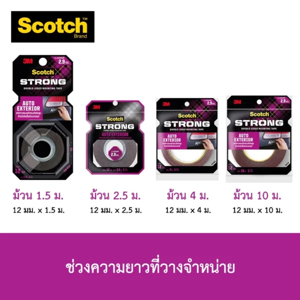 เทปกาว 2 หน้าสำหรับงานตกแต่ง (12 มม.x2.5 เมตร) ยี่ห้อ 3M (1 ม้วน)